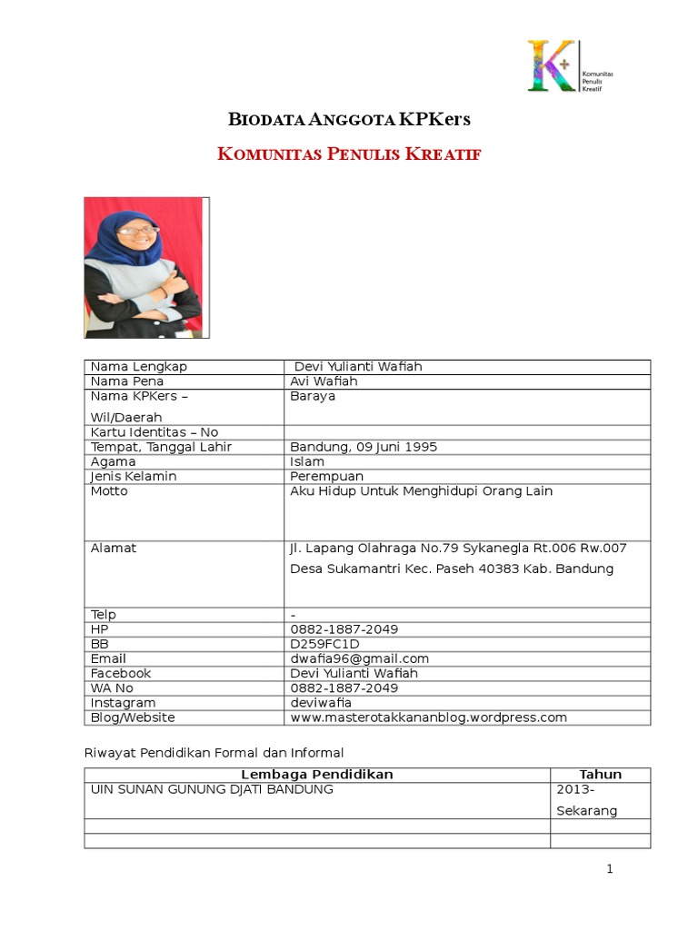 Isi dari contoh biodata ta aruf lengkap haruslah benar dan jangan sampai ada kebohongan. Contoh cv daftar riwayat hidup baik menarik kreatif. Lampiran 3 format laporan pita 29 lampiran 4 contoh kulit. Fokus dan kebudayan suku jambi di indonesia. Biodata penulis ditulis pada halaman terakhirdan berisi resume penulis, antara lain tempat dan tanggal lahir, riwayat pendidikan, aktivitas.