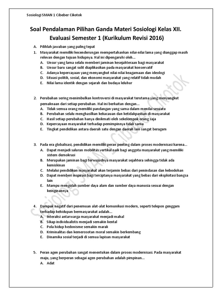 Pdf Modul Sosiologi Kelas Xii Semester 2 Pdf Yusuf Aldy Academia Edu from 0.academia-photos.com Pilihan ganda soal dan jawaban uas sosiologi kelas xii sebanyak 40 butir soal. Kunci jawaban soal pendalaman pilihan ganda materi sosiologi kelas xii. Globalisasi dan perubahan komunitas lokal (kurikulum 2013) Jual buku sma ma kelas 12 buku siswa kimia kurikulum 2013 kunci jawaban buku pr kimia intan pariwara kelas xii peatix. Terutama bagi guru pengajar dan murid khusunya. Kunci jawaban evaluasi bab 1 sosiologi kelas 12 guru galeri. Salah satu cara mempelajari biologi yaitu dengan mempelajari materi yang ada pada setiap babtema. Klik warna biru untuk link soal pendalaman materi pilihan ganda kelas xii bab 2.