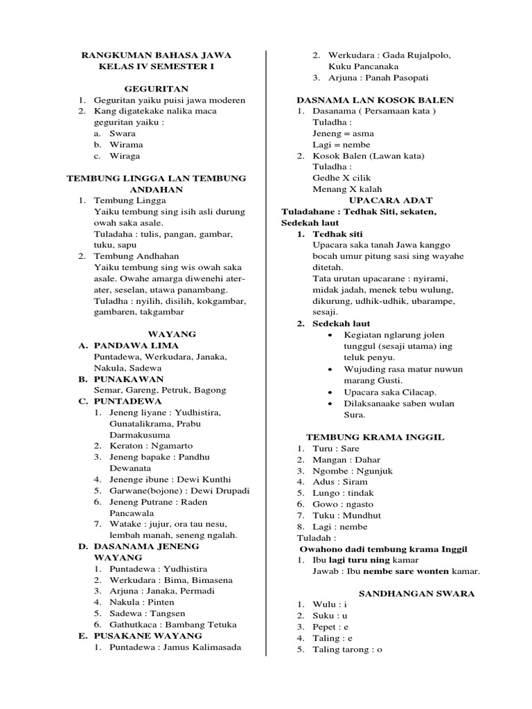Rangkuman Materi Bahasa Jawa Kelas 4 Sd Semester 2 - 20 Kunci Jawaban Buku Tantri Basa Kelas 4 Halaman 12 Pictures Ilmu Link - Materi matematika kelas 4 semester kedua di bawah ini merupakan hasil revisi kurikulum 2013 tahun 2018.