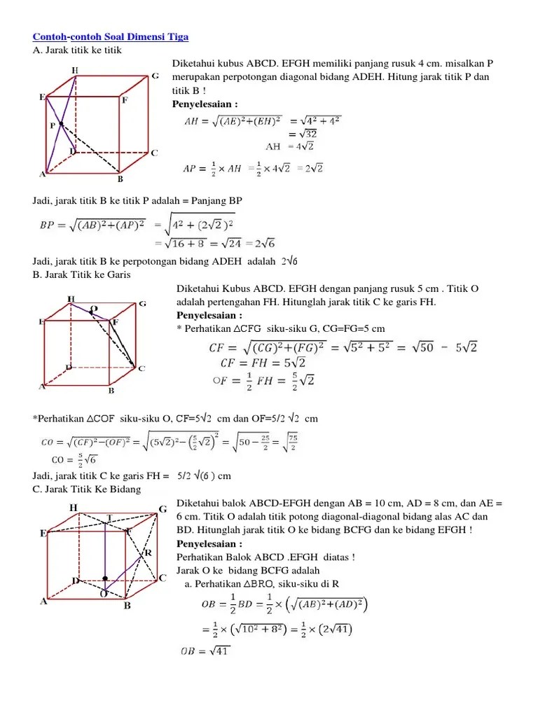 Pada kubus abcd.efgh, memiliki panjang sisi 12 cm. Kedudukan titik garis dan bidang dalam dimensi tiga. Pada kurikulum 2013 revisi terbaru revisi 2016 dimensi tiga merupakan materi yang dipelajari di kelas xii pada matematika wajib. Efgh dengan panjang rusuk 4 cm. Hey kamu kelas xii yang baru naik tingkat.